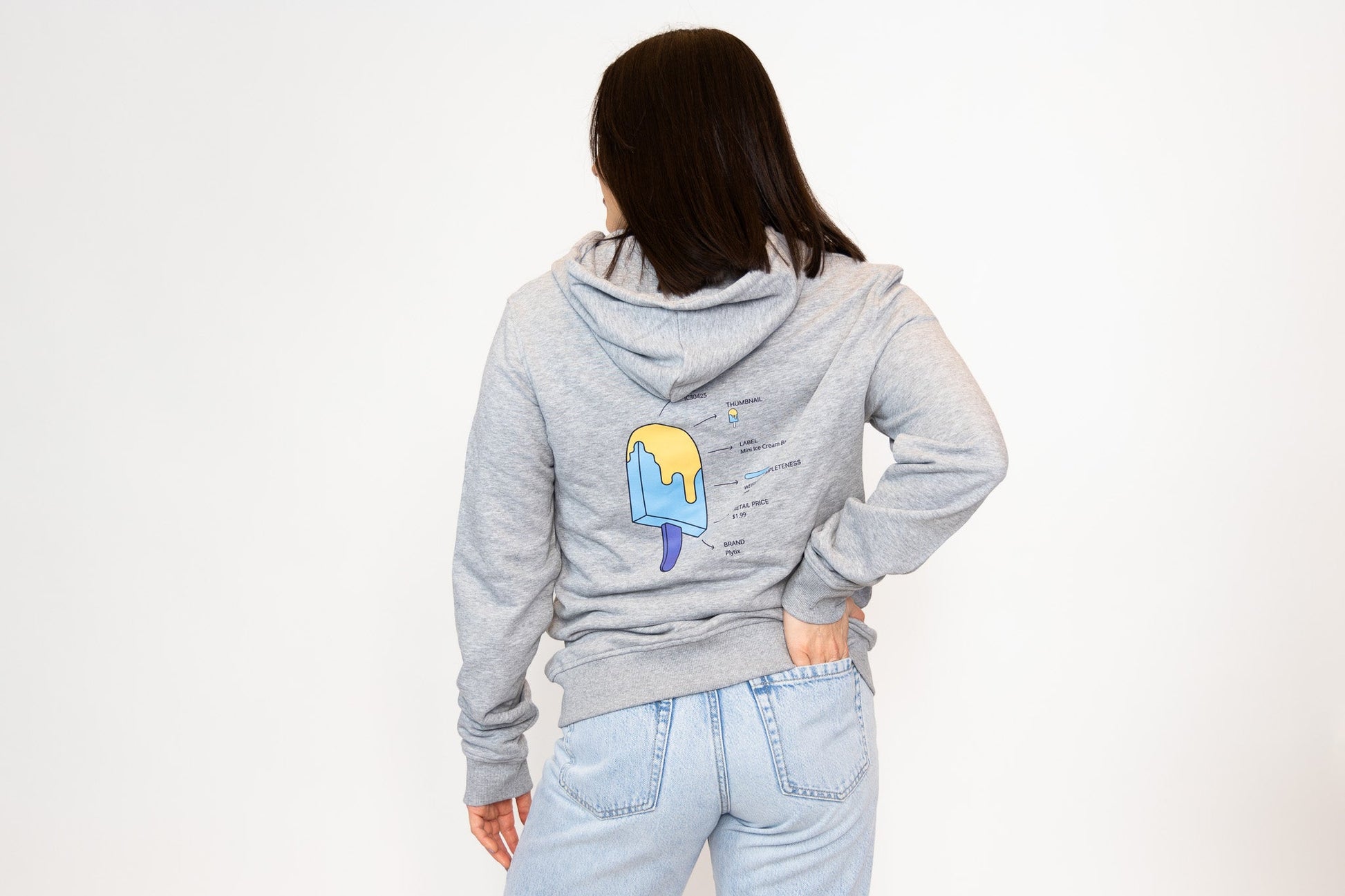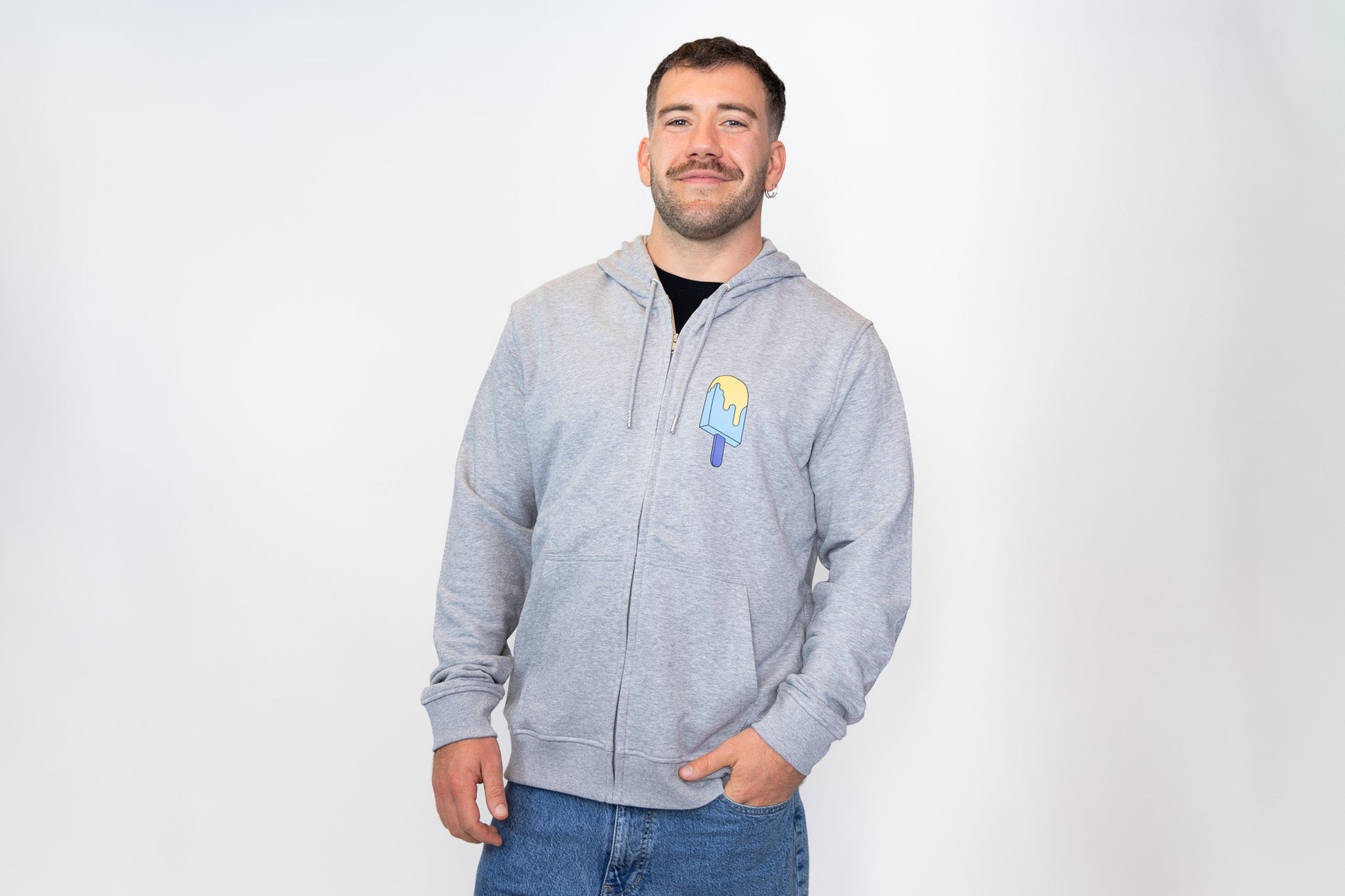Der Ice Cream Zipper Hoodie vereint Gemütlichkeit und Verspieltheit. Aus weichem, komfortablem Stoff gefertigt, bringt das graue Hoodie mit lustigem Eisdessindesign einen Hauch von Phantasie in deine Garderobe. Mit einem vollständigen Reißverschluss und verstellbarer Kapuze ist es vielseitig einsetzbar, sei es solo oder schichtweise für extra Wärme. Perfekt für entspannte Tage zu Hause oder beim Ausgehen mit Freunden – dieser Hoodie ist dein idealer Begleiter für einen lässigen Style mit süßem Akzent.