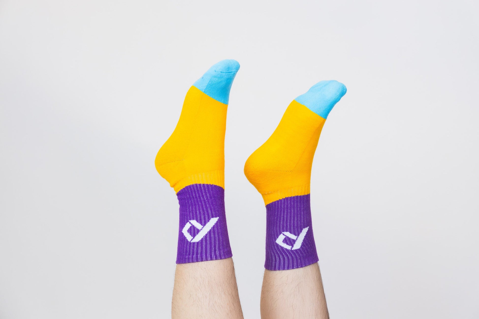 Calcetines coloridos y cómodos con un divertido diseño tricolor, añadiendo estilo a cualquier look.